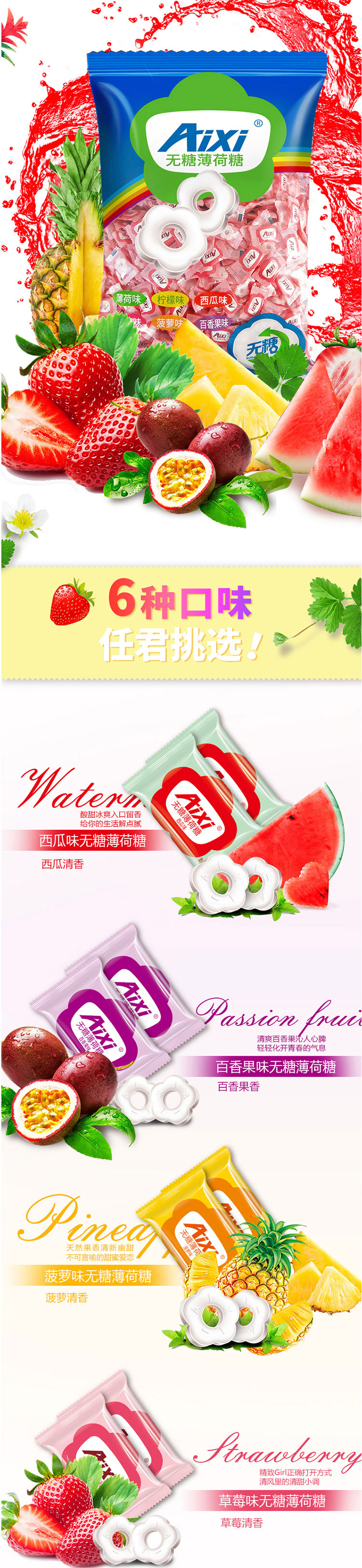 Aixi无糖薄荷糖_西瓜味_2.5kg/袋*6 —— 自由设计